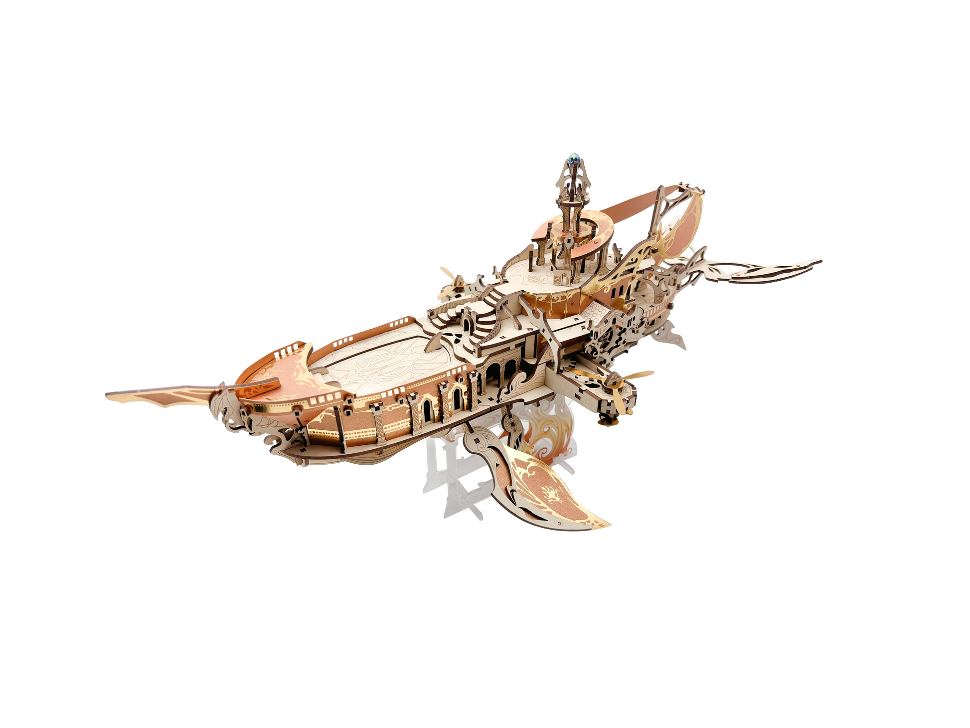 Interactive Features: Tri-touch audio module (3x Sapphic crystal chimes), 6-axis kinetic wing assembly